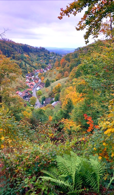 Ein „herbstbunter Blick“ von der Claras Höhe in das Lerbachtal (c) Karin Pinnecke